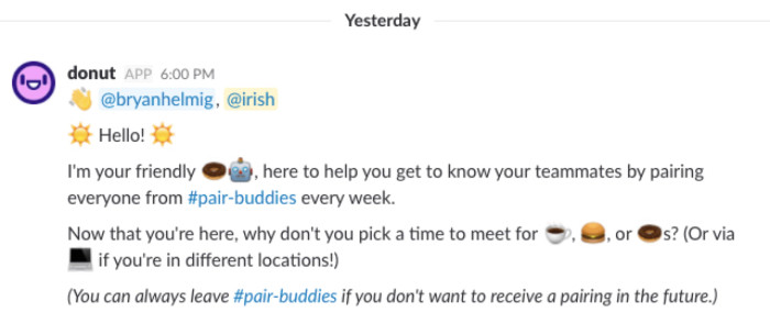 8 Apps For Slack That Keep Remote Work On Track Slack from d34u8crftukxnk.cloudfront.net Managing remote teams can be extremely challenging. We have personally tested a large number of slack integrations and selected. The following article offers a selection of slack apps for remote teams. When everyone is working remotely, keeping teammates aware of your status—especially if you'll be slow to respond—is key. When team members are scattered in different locations, building a tight connection among team but donut slack app makes it easier for remote teams. That's why we love giphy. It's a lighthearted activity that will relieve tension and get your team chatting to each other about something other than. But slack has some great apps that can help you to work more donut introduces people who don't know each other well on teams of all sizes via direct messages and encourages them to meet virtually for a variety of.